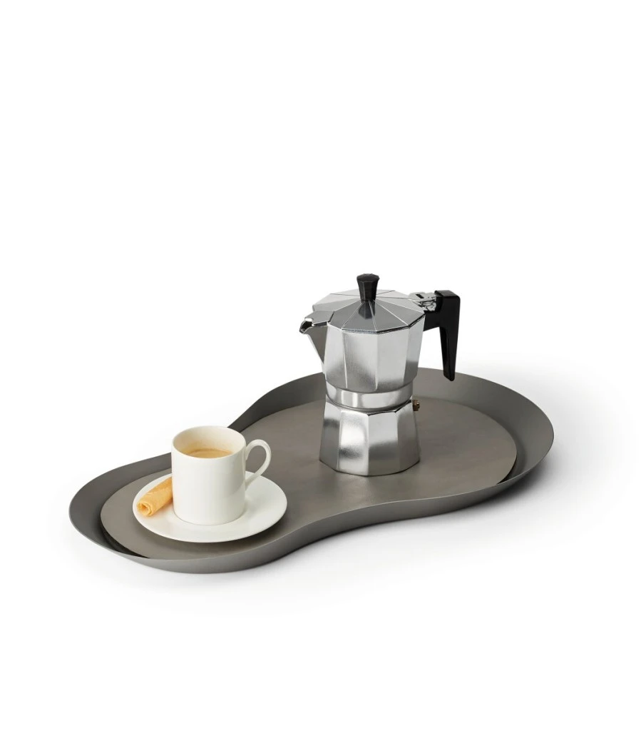 Die ästhetisch geschwungene Form verrät bereits auf den ersten Blick, dass ANACAPRI ausnahmslos für höchste kulinarische Genüsse kreiert wurde. Tee, Kaffee, Gebäck oder Champagner lassen sich dank der schräg hochgezogenen Kanten mühelos einhändig und sicher an den Tisch bringen. Zudem vermeidet die rutschfeste Unterlage aus veganem Leder Unfälle der ungewollten Art. Die sowohl funktional überzeugende als auch optisch überragende Gestaltung von Veit Streitenberger zeugt von seiner guten Schule bei den Design-Legenden Richard Sapper (u.a. ARTEMIDE, ALESSI, IBM) und Dieter Rams (BRAUN). Gelernt ist halt gelernt.