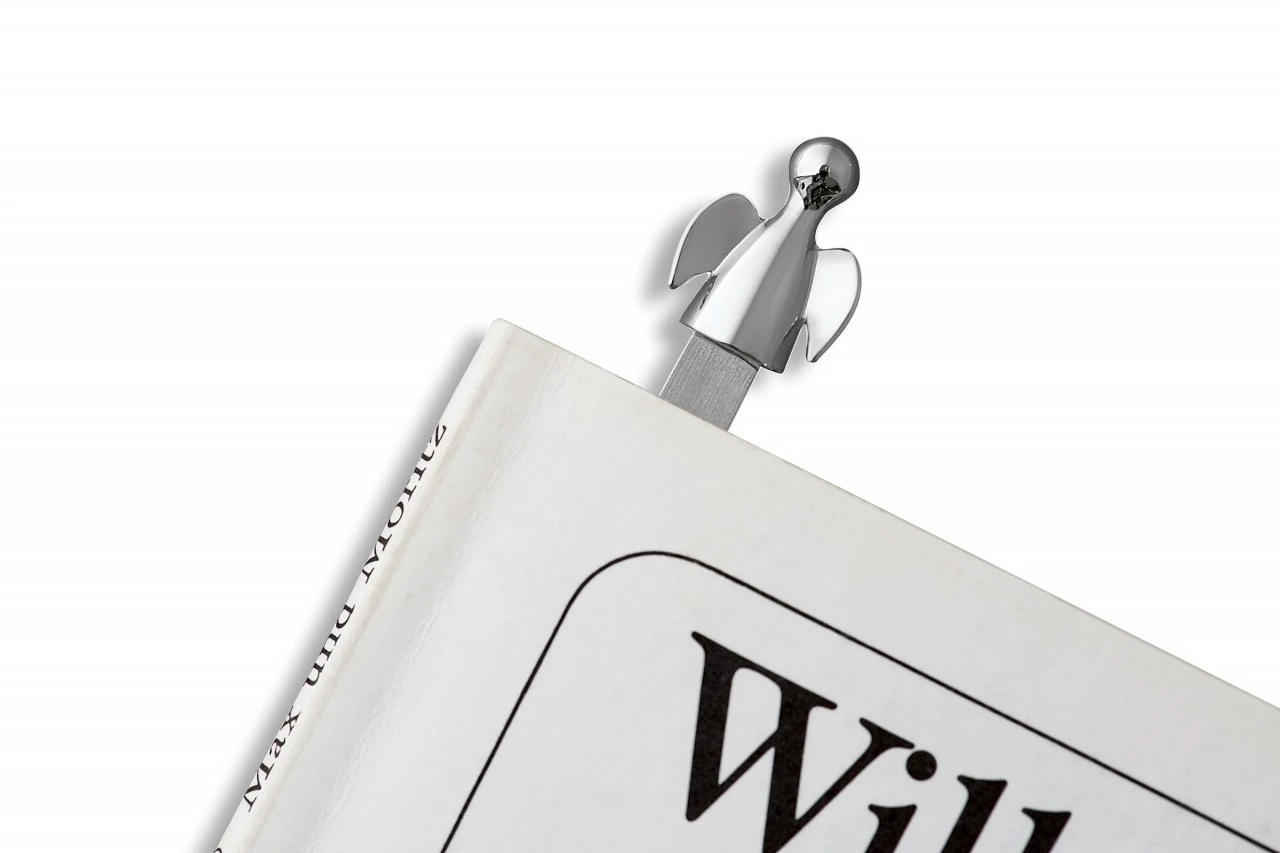 Der Schutzengel ANGELO hat eine besondere Leidenschaft für Bücher und liebt es, vergnügt auf dem Buch zu sitzen und dafür zu sorgen, dass sein Leser stets die richtige Seite wieder findet. Aber auch seine Aufgabe als Schutzengel nimmt ANGELO äußerst ernst. Deshalb lässt er sich auch besonders gerne an geliebte Menschen verschenken.