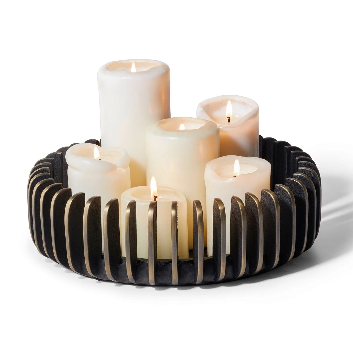 Bilbao besteht aus antik-goldfarbenem Aluminium. Die Schale hat