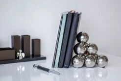 Gewichtig im Stand und doch so leicht heften sich 10 silberne Kugeln wie Gedankenblasen zu einer Buchstütze aneinander. Ob Tolstoi, Shakespeare oder Lindgren – das glänzend polierte Äußere von BUBBLES verhilft der gesammelten Literatur zu neuem Anmut und lädt zum Lesen ein. Einzeln oder im Paar? Das ist nicht die Frage. 100% verlässlicher (Rück-)halt ist hier die Maxime.