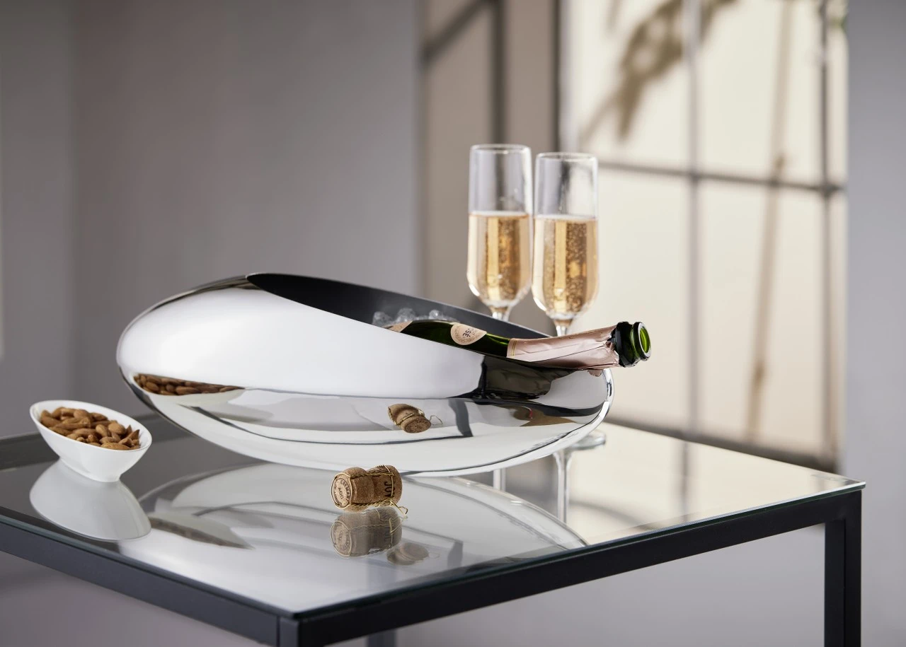 Edler können sowohl Champagner als auch Tulpen nicht präsentiert werden – im besten Fall gepaart nebeneinander! COCOON ist ein exquisites Stück Handarbeit, hochwertig und elegant. Ob als Champagnerkühler oder als Tulpenvase eingesetzt, der edle Tropfen wie auch die bezaubernden Blumen erhalten in COCOON einen mehr als ungewöhnlichen Auftritt, gebettet in hochglanzpoliertem Edelstahl.