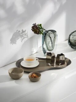 Hoppla, hier kommt COPPA! Vollkommen ungeschminkt und rein. Der makellose Auftritt, der dankbarerweise zur Abwechslung auf Chichi und Farbalarm verzichtet, liegt maximal im Trend. COPPA hat sich die geschmackvolle Präsentation von Snacks, Nüssen, Dips, Tapas, Gewürzen zur Hauptaufgabe gemacht – außen matt pulverbeschichtet, innen glänzend emailliert, lebensmittelecht und bruchsicher. Nach Gebrauch heißt es Abmarsch in die Schublade, denn die drei Schalen lassen sich prima ineinander stellen und benötigen wenig Stauraum.