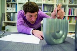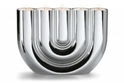 Bei diesem Teelichthalter hat sich Boris Kupczik von den legendären Straßenkreuzern der 50er Jahre inspirieren lassen. Blitzendes Chrom und die elegant geschwungene Form lassen nicht nur die Herzen von Autoliebhabern höher schlagen. DOUBLE U ist ein besonderes Accessoire, welches mit seinem Kerzenschimmer für eine warme Atmosphäre sorgt und gleichzeitig alle Blicke auf sich zieht.