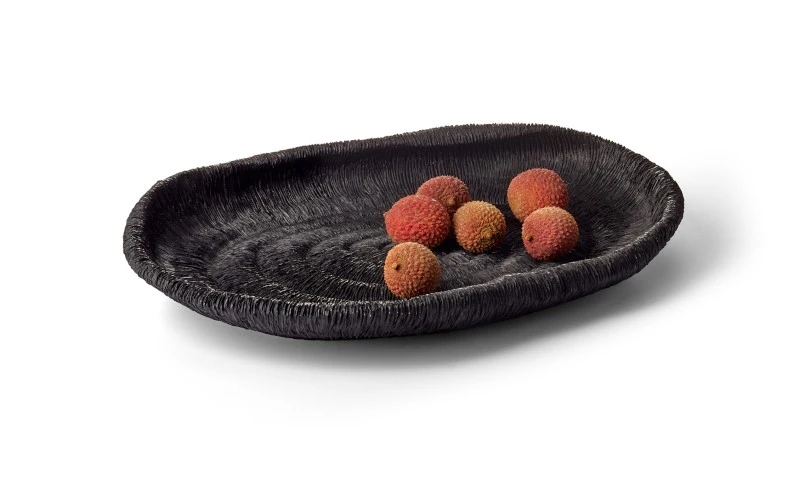 Sieht aus wie geflochten, ist sie aber nicht. Die organisch geformte Schale wurde tatsächlich in einem Stück aus Kunstharz gegossen und darf deshalb (auch) Langlebigkeit zu einer ihrer großen Stärken zählen.
