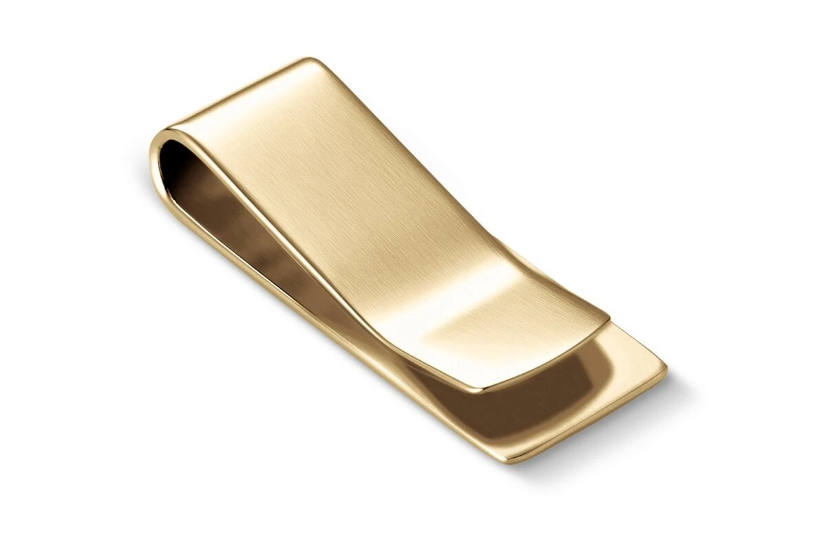 Unhandliche Geldbörsen in der Tasche führen – gewollt oder ungewollt – zwangsläufig zu dicker Hose. Und die ist sowas von vorvorgestern. Deutlich smarter agiert der Mann von Welt mit dem unauffälligen Geldscheinclip HAP. Die Klammer aus gebürstetem Messing findet in jedem Smoking oder Anzug unauffällig Platz, trägt nicht auf und ist der ideale Begleiter auf allen Events. Mit weichen Kanten und abgerundeten Ecken sowie der Möglichkeit zur Gravur, ist der Clip sowohl optisch als auch haptisch eine Investition in den perfekten Gentleman-Auftritt.