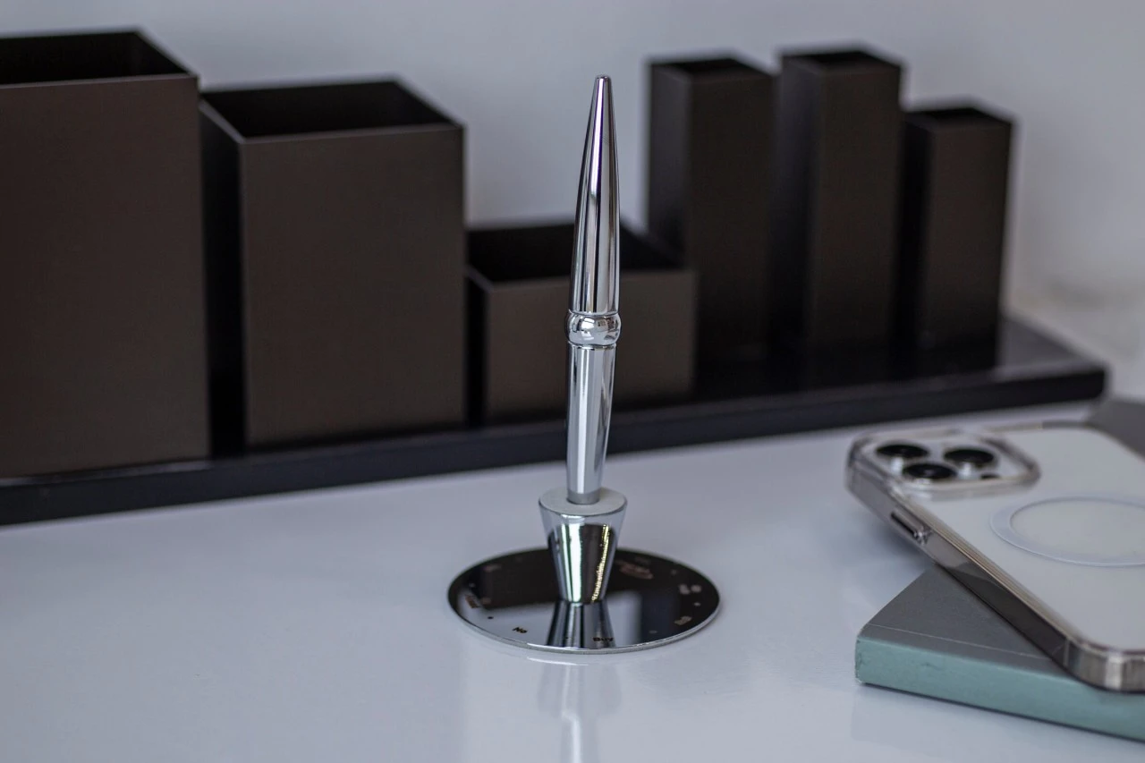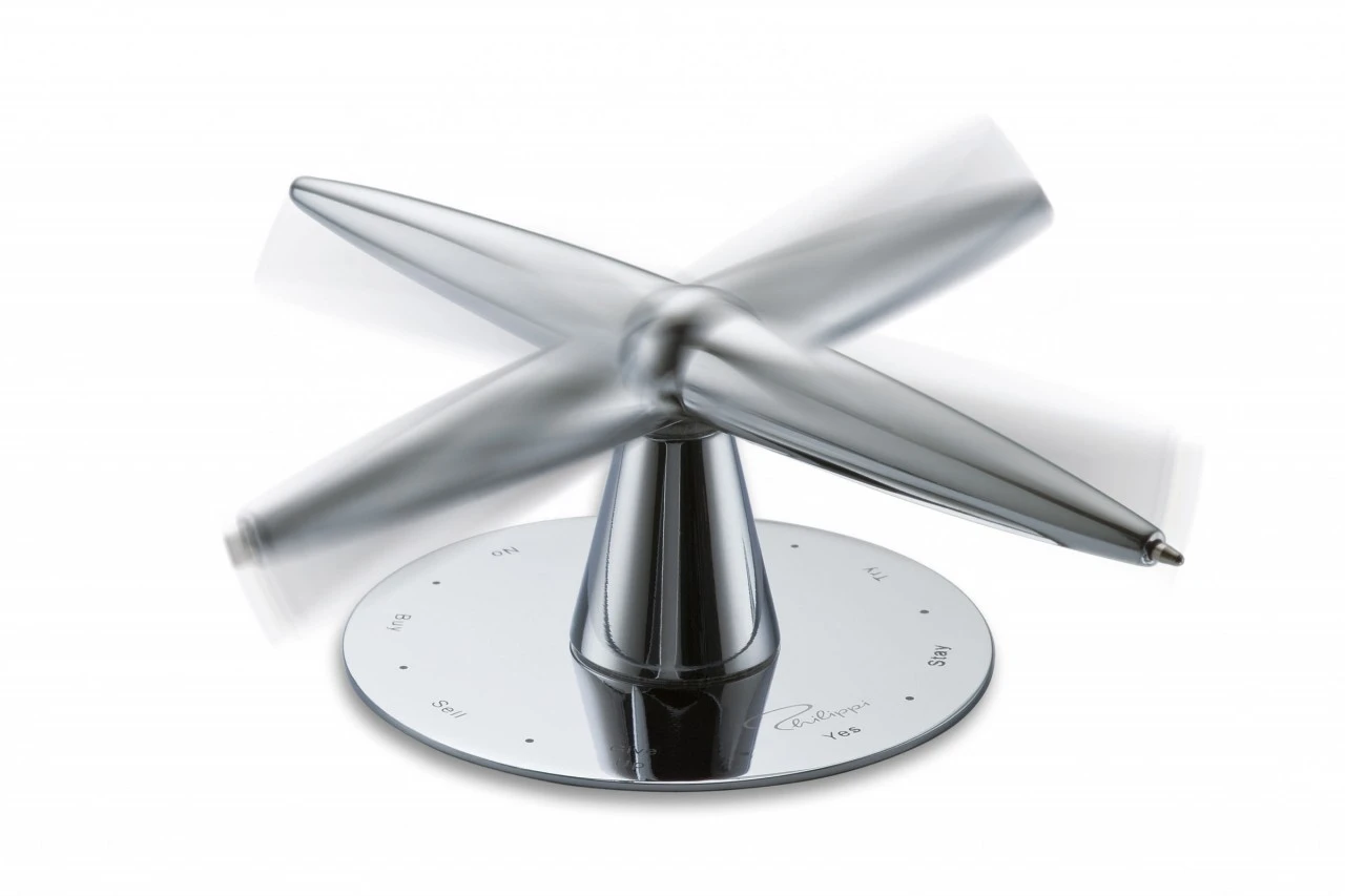 Praktisches mit Augenzwinkern sind perfekte Produkte, um den Büroalltag aufzulockern. Ganz weit vorne liegt dabei der Stift HELICOPTER. Senkrecht in den Fuß gesteckt, ist er ein ganz normaler Stift mit Halterung. Waagerecht auf die Halterung gelegt kann man mit HELICOPTER nicht nur toll Propeller spielen, sondern sich auch gleich bei zahlreichen Entscheidungen helfen lassen.