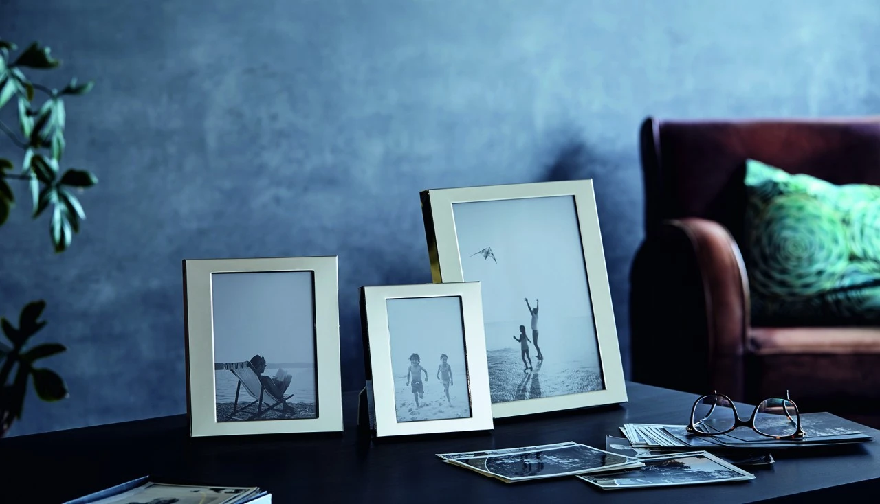 Jeder der virtuos zeitlosen Rahmen LA PLAGE ist auch immer eine Kurzreise in die Vergangenheit. Die auf ein Minimum reduzierte Form aus hochglanzpoliertem Nickel bietet die perfekte Bühne für Erinnerungsfotos der Familie. Nichts lenkt ab, wenn die Gedanken für einen Augenblick an den Ort der schönsten Momente zurückkehren. LA PLAGE ist auch immer ein wunderschöner Kurzurlaub zum Abschalten.