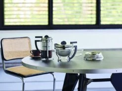 Der renommierte Industrie-Designer Tassilo von Grolman zeichnet sich ebenso verantwortlich für das unvergängliche Bauhaus-Design, wie auch für die vielen kleinen durchdachten Funktionen des French-Pull-Kaffeebereiters.