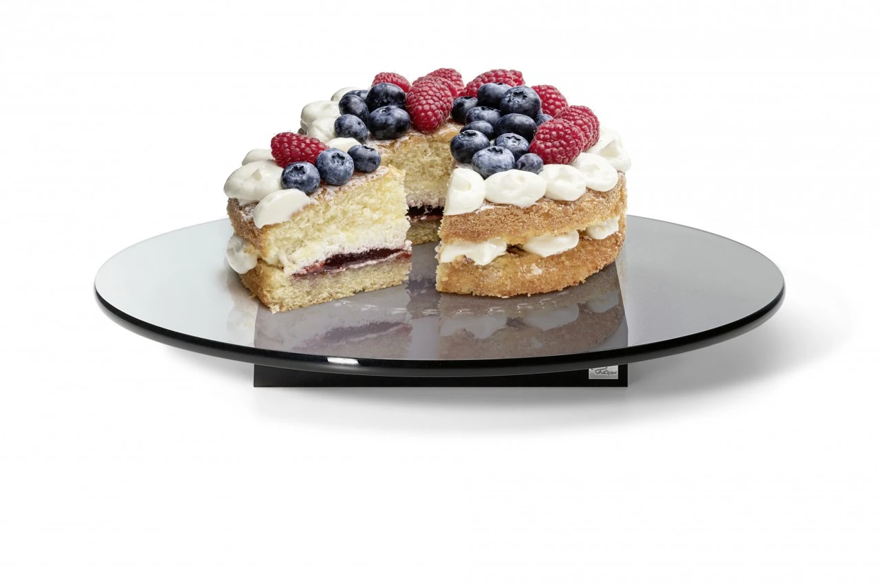 Der Drehteller LAZY SUSI eignet sich hervorragend, um Obst, Kuchen oder auch Canapees anzurichten. Ein tolles Accessoire, um mit mehreren von einem Teller zu naschen. Der exklusive Drehteller aus Glas liegt kugelgelagert auf einem Korpus aus pulverbeschichtetem Aluminium. Die Kugeln sind fest integriert, so dass sie nicht herausfallen können.