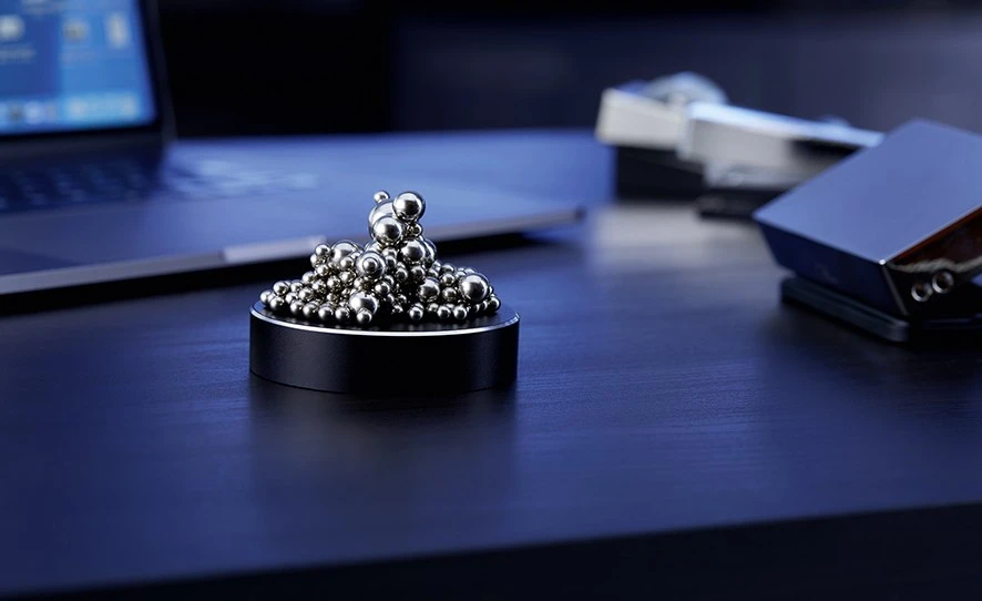 Etwas Ruhe braucht der Mensch! Und nichts eignet sich besser zum Entspannen als MALO. Seine 200 Stahlkugeln auf dem magnetischen Sockel lassen sich beliebig auftürmen, neu anordnen oder zu abstrakten Figuren formen. Die überarbeitete Luxusvariante des angenehm beruhigenden Stresskillers kommt nonchalant im feinen Maßanzug daher. Kunststoff wurde komplett in die Verbannung geschickt – sein kugelneuer, edler Auftritt unterscheidet sich von der bisherigen Version durch eine reine Metallbasis und der auffälligen Schmuckkante aus gebürstetem Aluminium. Und das mit der Ruhe kommt dann schon ganz von selbst.