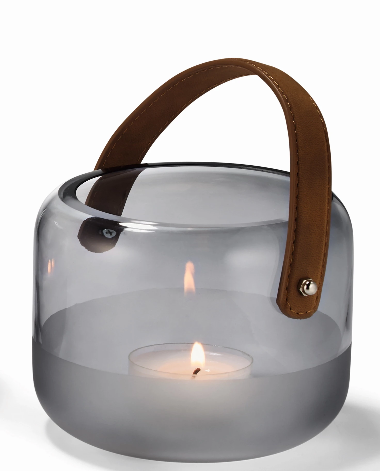 Wohlgeformtes und mundgeblasenes Glas zusammen mit echtem Leder – das Marlon Windlicht vereint zart und hart perfekt. So entsteht ein Wohnaccessoire der Extraklasse, das für gemütliche Stunden sorgt. Der mattierte Rand am unteren Ende des Glases reflektiert sanft das Teelicht.