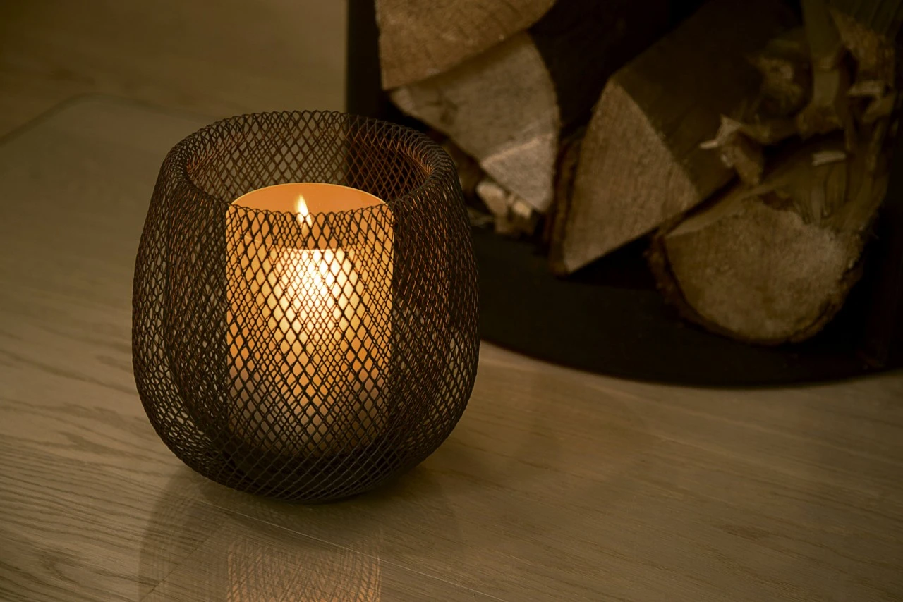 Unser Designer-Windlicht spielt mit Kontrasten und fasziniert drinnen wie draußen! Sein raffinierter Korb aus pulverbeschichtetem Stahl gibt den Blick auf einen Milchglas-Zylinder frei, der die Flamme schützt. Ob Terrasse oder Sideboard, das Windlicht ist herrlich leicht und kann mit nur einem Handgriff den Platz wechseln. Die fließende Form macht MESH zur schönsten Quelle für natürliches Licht.