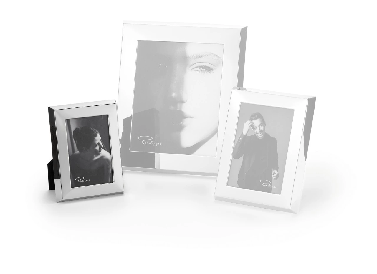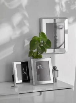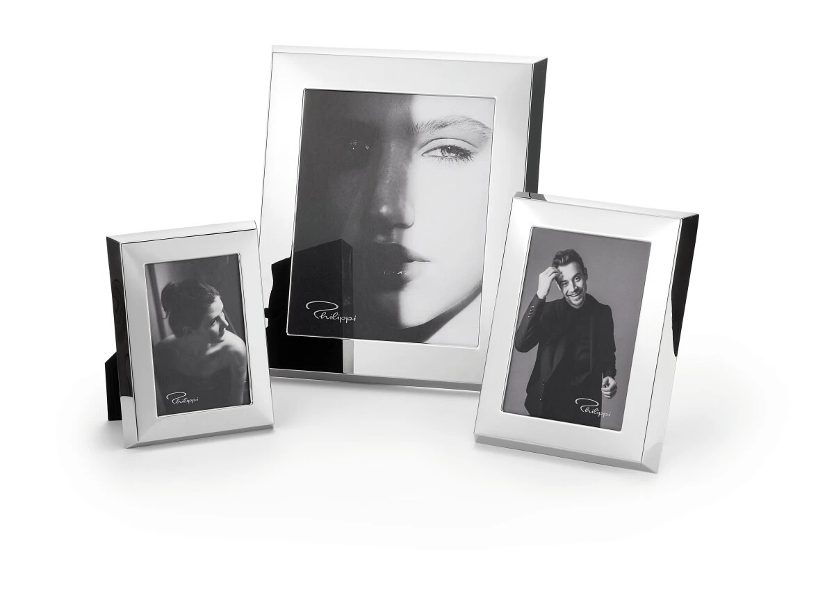 Die Magie des Rahmens besteht aus einer Kantenformgebung, die auf die eine oder andere Art irgendwie schräg ist. Hat man MODA erst im Blickfeld, kommt man von ihm nicht mehr los. Keine Chance! Hochglänzendes Nickel mit edler, samtiger Rückseite inkl. glänzenden Metallverschlüssen machen ihn jetzt schon zum Klassiker. Dass sich der Rahmen sowohl zum Stellen als auch zum Hängen eignet, wahlweise im Hoch- oder Querformat, gehört eher schon zu den Selbstverständlichkeiten.