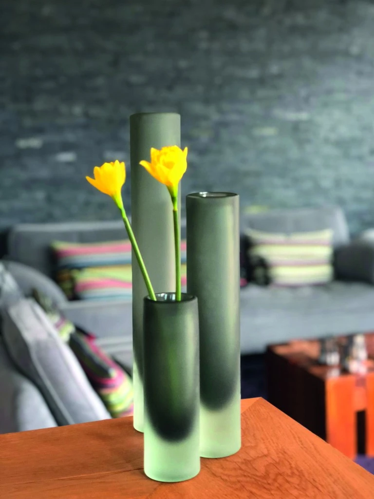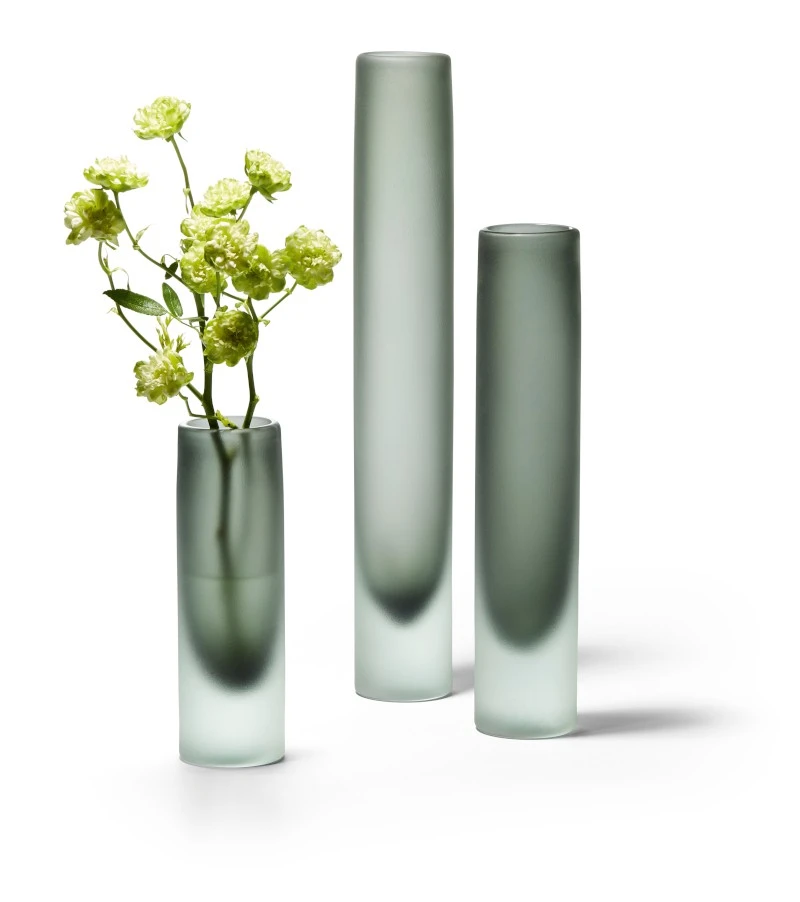 20-30-40 sind die neuen Traummaße aller Raumgestalter – das Design mit dem mundgeblasenen, satinierten Glas in drei unterschiedlichen Höhen ist dankbarerweise nicht am Reißbrett entstanden und somit ist jede Vase ein Unikat. Ihre schmale, lange Form in einzigartig schwerer Haptik ist ideal für einzelne Blumen, Äste oder Kunstblätter geeignet. Das massive Glas im trendig graugrünen Farbton sorgt dabei für den sicheren Stand.