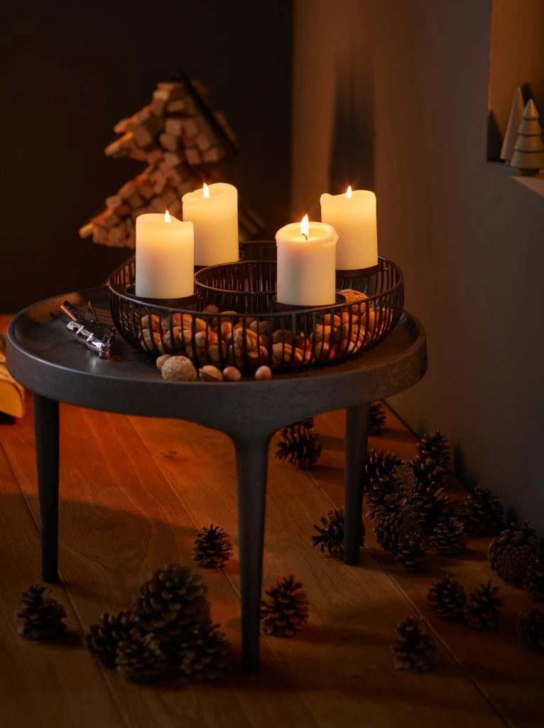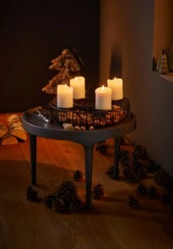 Der Panama Adventskranz lädt ein zum Festtags-Tuning! Verleihe deinem Tisch magisches Flair – mit Tannenzweigen, Nüssen und Obst, ganz nach deinem Geschmack. Seine runden Formen und der warme Stahl in mattem Braun bringen Weihnachtszauber auf dein Fest. Ob für den großen Tisch oder deine gemütliche Ecke – hier lodert die Liebe zur Weihnachtszeit! Mach dich bereit für unvergessliche Momente, wenn Stumpenkerzen aufleuchten und Lachen den Raum füllt. Kreiere deine eigene Tradition, sei der Meister des Festes und erwecke deinen Panama Adventskranz zum Leben!
