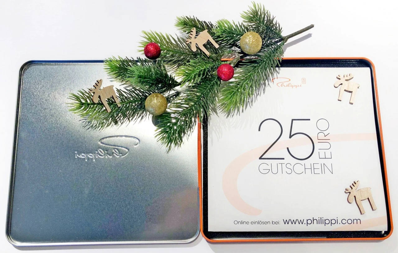 Unser brandneuer PHILIPPI Gutschein macht Ihnen das Leben besonders leicht: Sie wählen den passenden Betrag aus und bestellen Ihren Gutschein ganz einfach in unserem PHILIPPI Web-Shop. Dieser wird daraufhin versandkostenfrei innerhalb von 3 Tagen zu Ihnen nach Hause geliefert. Sie erhalten eine edle PHILIPPI Geschenk-Box inklusive aktuellem Katalog und dem bestellten Gutschein. Egal ob Geburtstag, Hochzeit oder Weihnachten: so haben Sie immer das ideale Geschenk für Ihre Liebsten. Und das ganz ohne Aufwand!