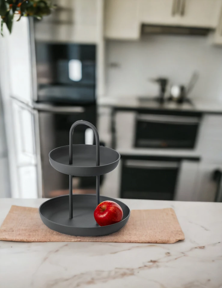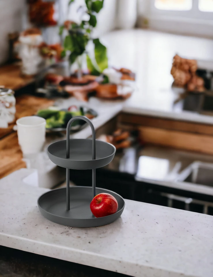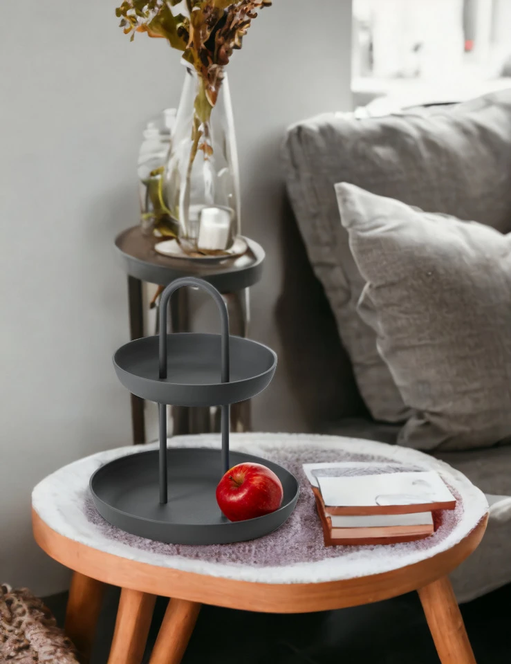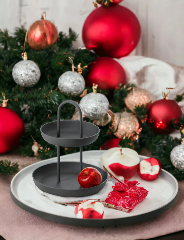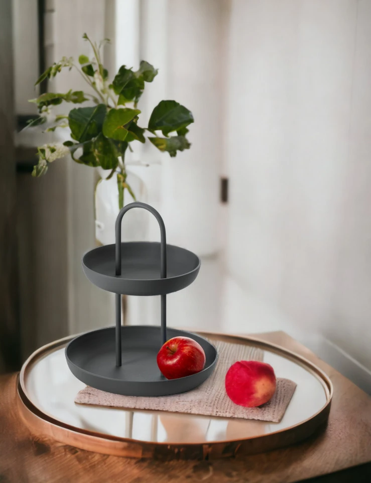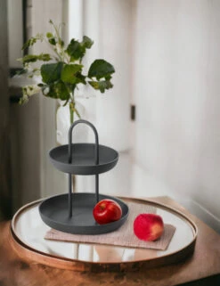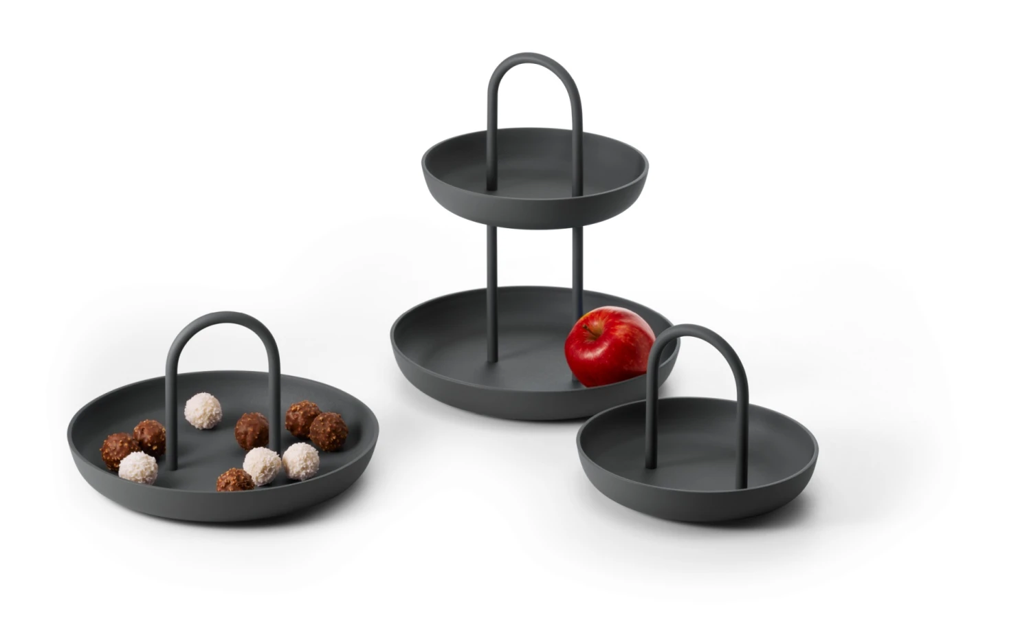 Das zeitlose Design der Piatto Etagére mit Henkel passt zu jeder Einrichtung und ist ein Blickfang auf jedem Tisch.