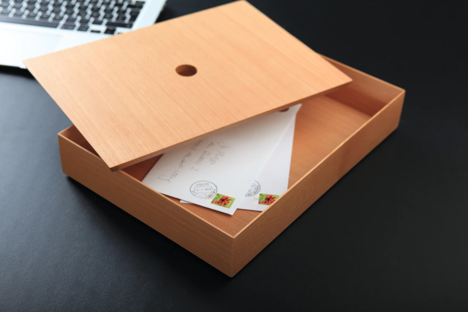 Sammelwütig: Script Dokumenten Box von Philippi. Sind Sie auch ein Geplagter von diversen Briefen, Rechnungen und Notizzetteln, welche den Schreibtisch verunstalten? Dann ist die Holzaufbewahrung genau das Richtige für Sie! Praktisch: Damit der Schriftverkehr nicht einstaubt, befindet sich auf der Design-Dokumentenbox ein Deckel. Und damit es nicht allzu schwer fällt, den Deckel anzuheben ist dieser mit einem Griffloch versehen.