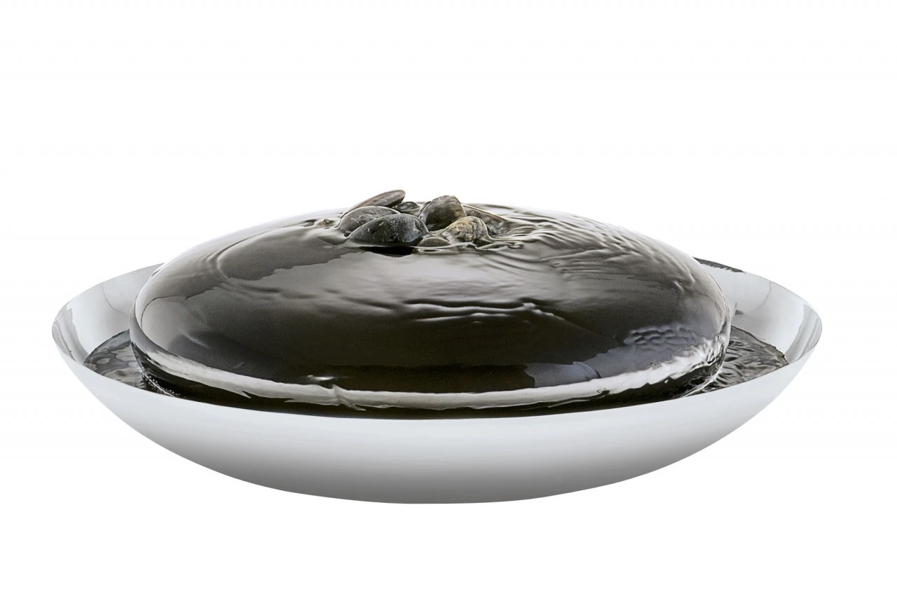 Zierbrunnen haben schon seit Jahrhunderten eine Anmutung von Romantik und Verzauberung. Ganz ohne Kitsch kommt der Zimmerbrunnen SPRING, und dabei lässt er noch Raum für Kreativität: Anhand der Anordnung der geschliffenen Kieselsteine kann jeder für sich entscheiden, ob sich das Wasser lieber gleichmäßig und ruhig verteilen oder etwas frischer plätschern soll.
