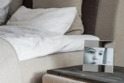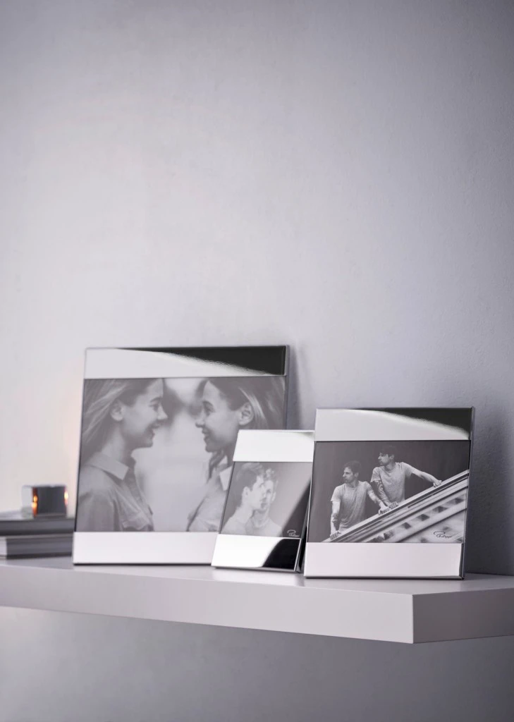 Stilvoller kann man seine schönsten Bilder nicht präsentieren. Im Bilderrahmen ZAK sind Fotos oben und unten durch ein Metallband so eingefasst, dass sie als Ganzes mit dem Rahmen harmonisch quadratisch wirken. ZAK lässt sich aufstellen und hängen und gibt erst im Ensemble seine ganze Strahlkraft preis. In matt und glänzend erhältlich.