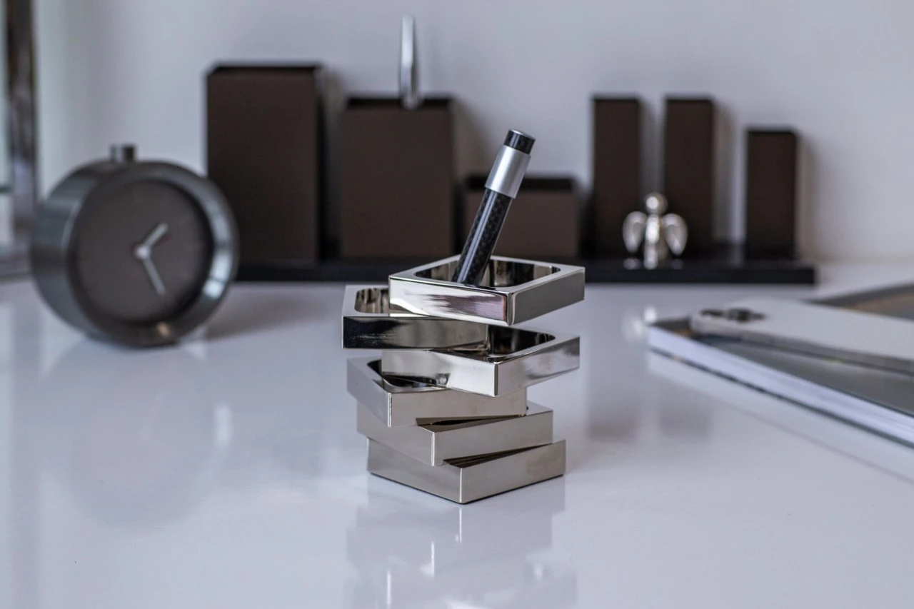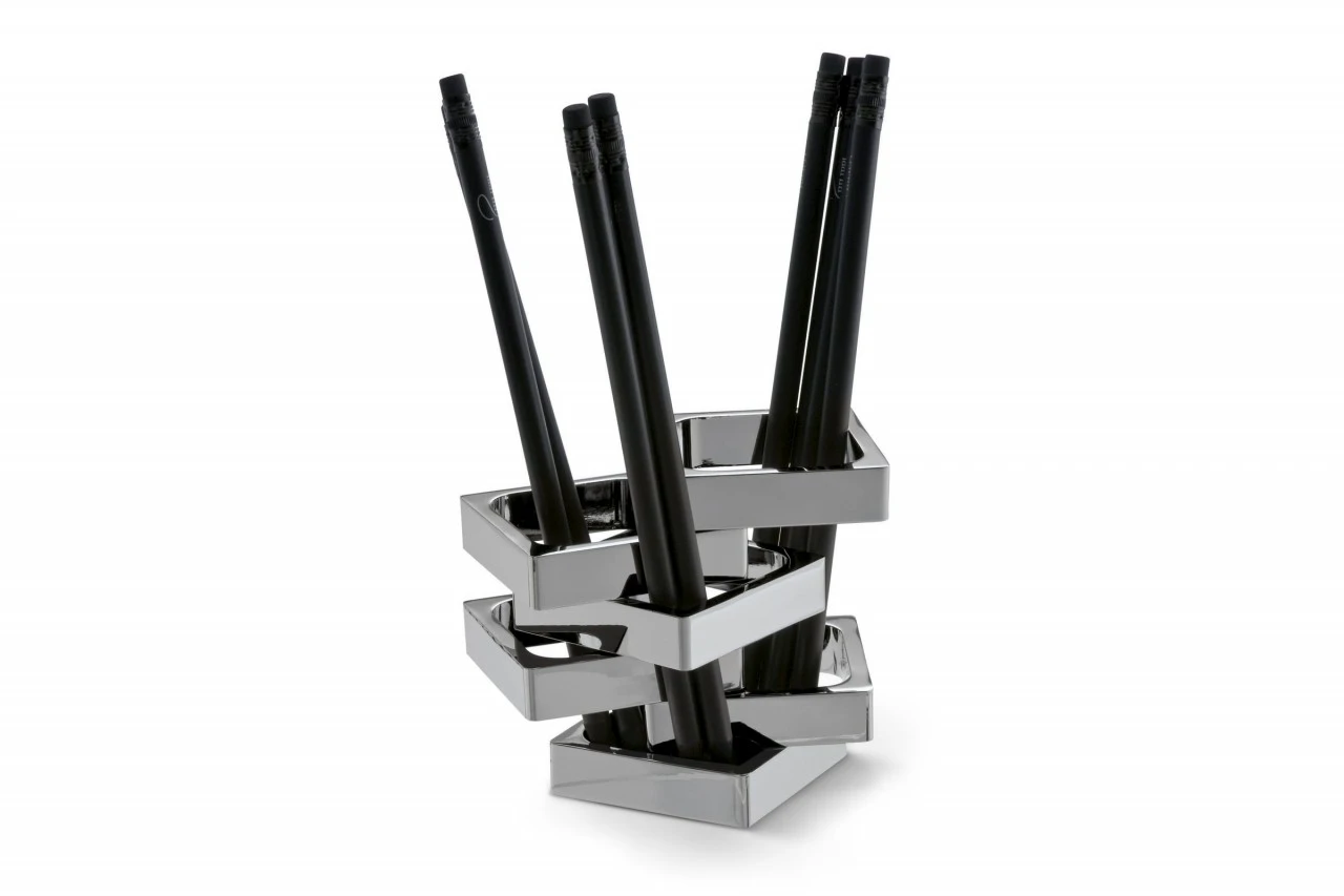 Der Stifthalter ZICK ZACK ist eine Augenweide für jeden Schreibtisch. Dieser praktische Helfer sieht nicht nur toll aus, sondern hilft auch ganz pragmatisch bei der Suche nach dem richtigen Stift. Denn ZICK ZACK besteht aus beweglichen Stapeln, die sich um die eigene Achse drehen lassen. Ein Samtfuß sorgt darüber hinaus für einen soften Auftritt.